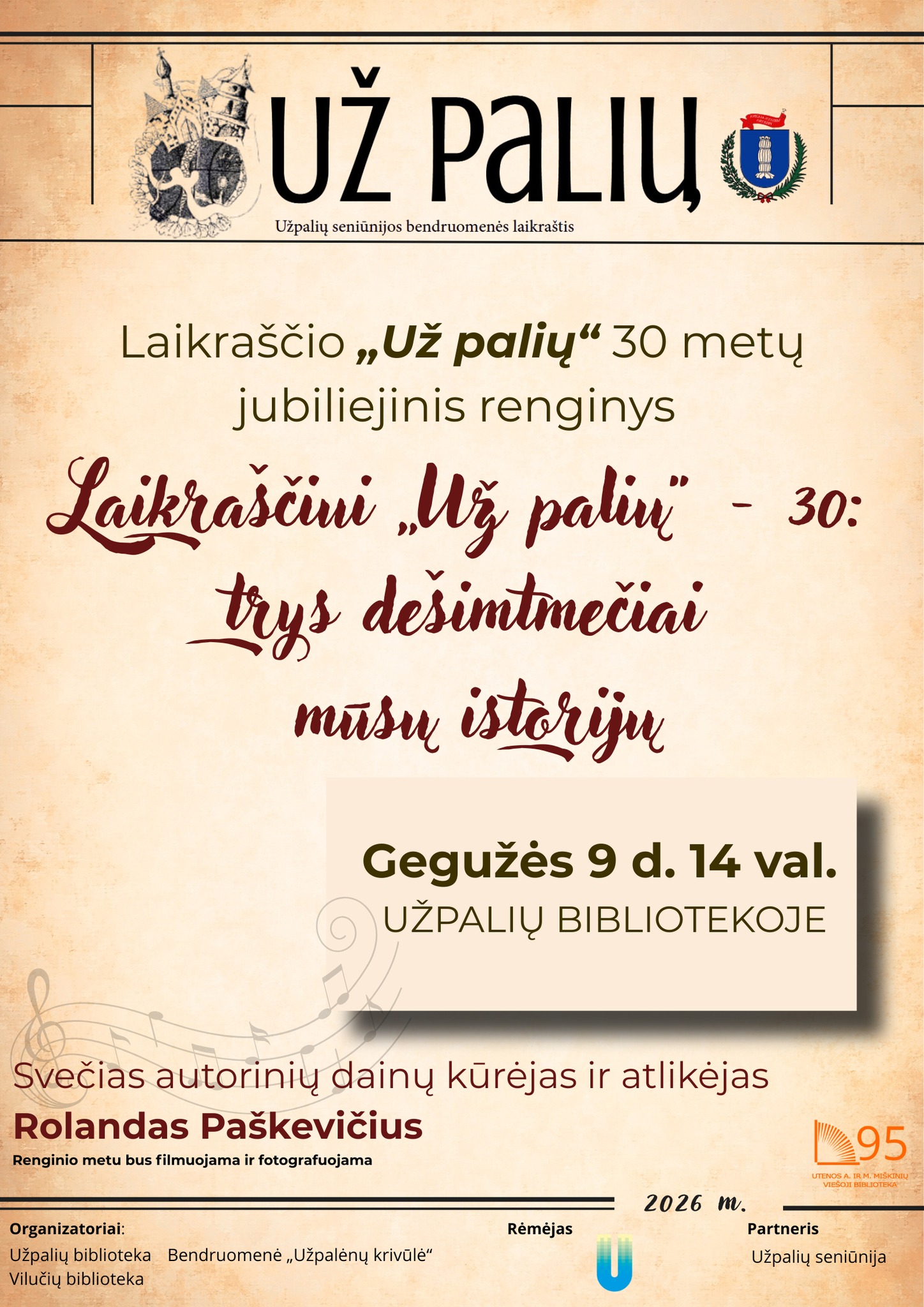 2026 m. gegužės 9 d. laikraščio „Už palių" 30 metų jubiliejinis renginys.